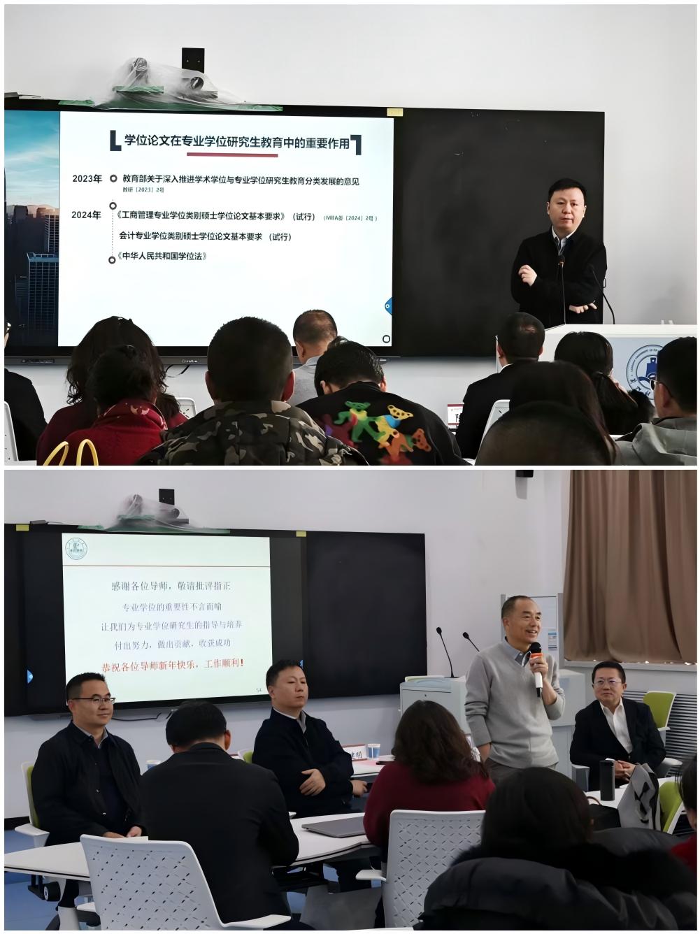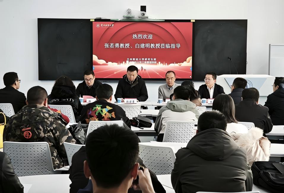 2026年1月5日下午,由研究生院主办、工商管理学院承办的非全日制专业型学位硕士研究生导师论文指导专题培训在段家滩校区博源楼302教室顺利举行。本次培训特邀兰州大学管理学院张若勇教授、白建明教授担任主讲嘉宾,我校50余名非全日制专业型学位硕士研究生导师积极参与交流。研究生院院长韩君出席并致辞,此次培训由工商管理学院院长陈刚主持。