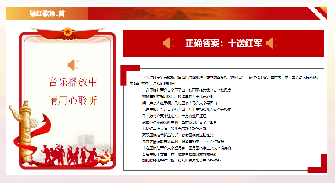 随后,支部开始了党史知识竞赛。此次竞赛为个人赛形式,采用抢答方式进行答题,题型丰富多样,涵盖“单选题”“看事迹猜人物”“猜红色电影”“猜红歌”“猜历史人物”“猜历史事件”六大类。内容涉及广泛,时间线从五四运动到二十大召开等诸多党史关键知识点;人物从彭德怀到屠呦呦等众多英雄模范的光辉事迹;红色经典影片引发了大家对历史的追忆;猜红歌环节从心底唱出了对党和国家的热爱;猜历史人物和历史事件则全面涵盖了革命先驱、杰出科学家、共和国勋章获得者、时代楷模等人物以及五四运动、南昌起义、抗美援朝、十一届三中全会等重大事件。