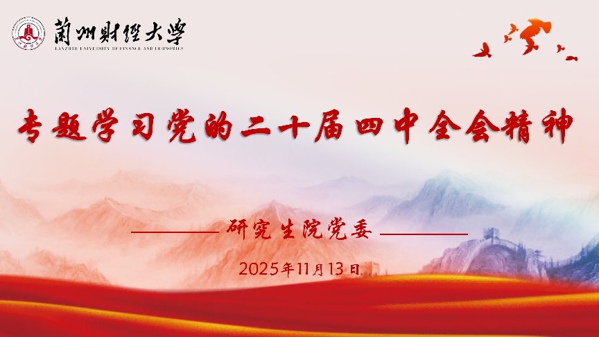 为全面深入学习贯彻党的二十届四中全会精神,11月13日下午,研究生院党委书记叶儒毓同志在段家滩校区博源楼智慧教室为第四届研究生宣讲团成员、研究生会骨干成员宣讲党的二十届四中全会精神。
