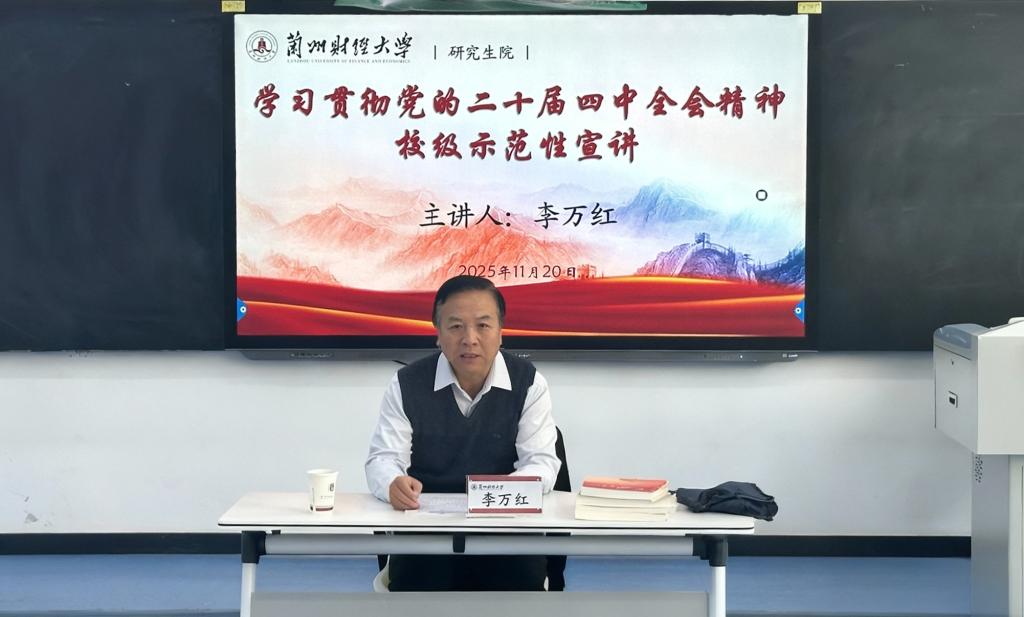 2025年11月20日下午,校党委常委、副校长李万红在段家滩校区为研究生院全体教职工、各培养单位研究生教学秘书及各学生党支部书记开展党的二十届四中全会精神专题宣讲辅导,推动全会精神在研究生院落地生根、走深走实。