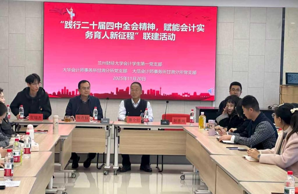 活动前期,支部党员及积极分子自主研读党的二十届四中全会公报及相关学习材料,结合会计专业学习实际梳理心得、交流研讨,为现场学习筑牢理论基础。活动现场,大华会计师事务所党总支副书记梁玉龙同志致欢迎辞并详细介绍本次共建交流的背景、目的及整体流程,逐一介绍双方参与人员,重点引荐事务所授课老师及相关负责人,为活动开展营造良好氛围。